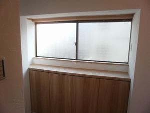窓の大きさからわかるように洗面所を広げました。これで洗濯機の使い勝手も良くなりました。